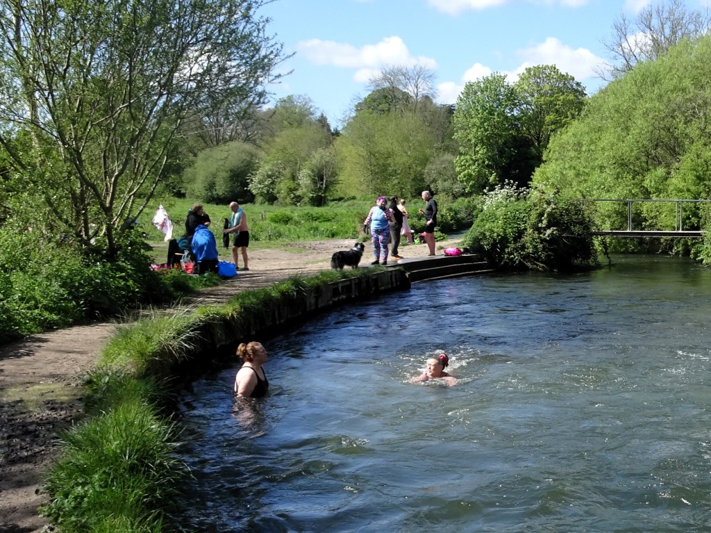 In these photos of my latest walk I’ve tried to capture some of the ambience of a Careers Walk on a spring day, with the lush greenness providing a reminder of the wet winter we’ve endured but making it all the more pleasurable, and also featuring the cold water swimmers we encountered along the way and the delightful beer garden at the pub.